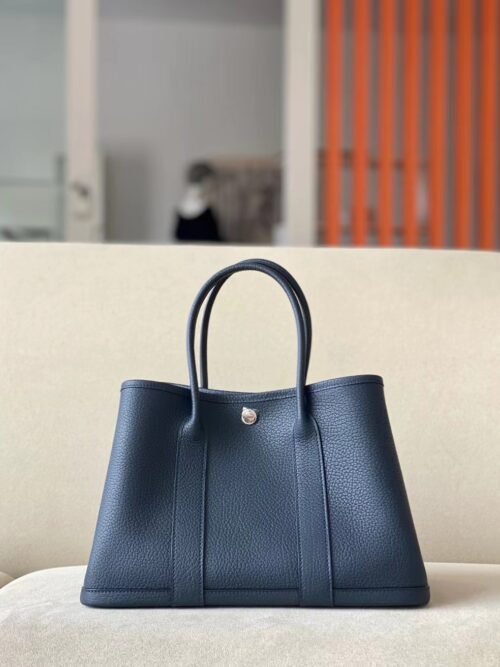 Hermes Garden party Ne Leather S4 Deep Blue Silver Hardware 30cm Full Handmade